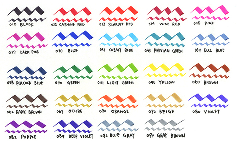 W gamie Calligraphy II są 24 przepięknie nasycone kolory.