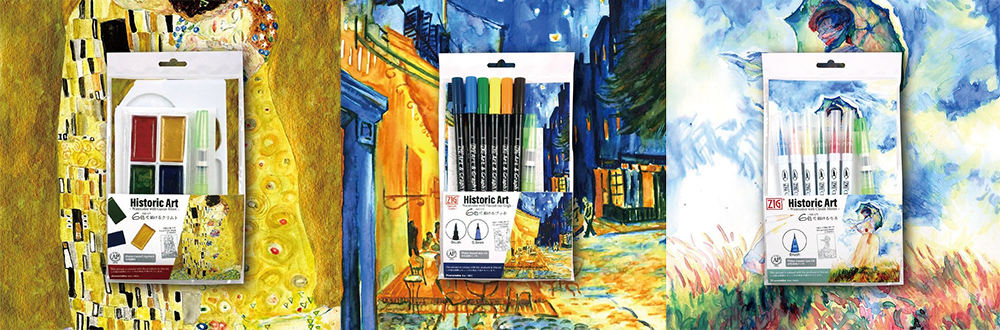 W dziale nowości dostępne są limitowane zestawy mediów wodnych Kuretake inspirowane obrazami Vincenta Van Gogha, Gustava Klimta oraz Claude'a Moneta. Zestawy zostały skomponowane z najwyższą starannością - prace pokazane w zestawach zostały wykonane przy użyciu produktów w nim zawartych. Nie potrzeba nic więcej, by stworzyć świetny projekt.