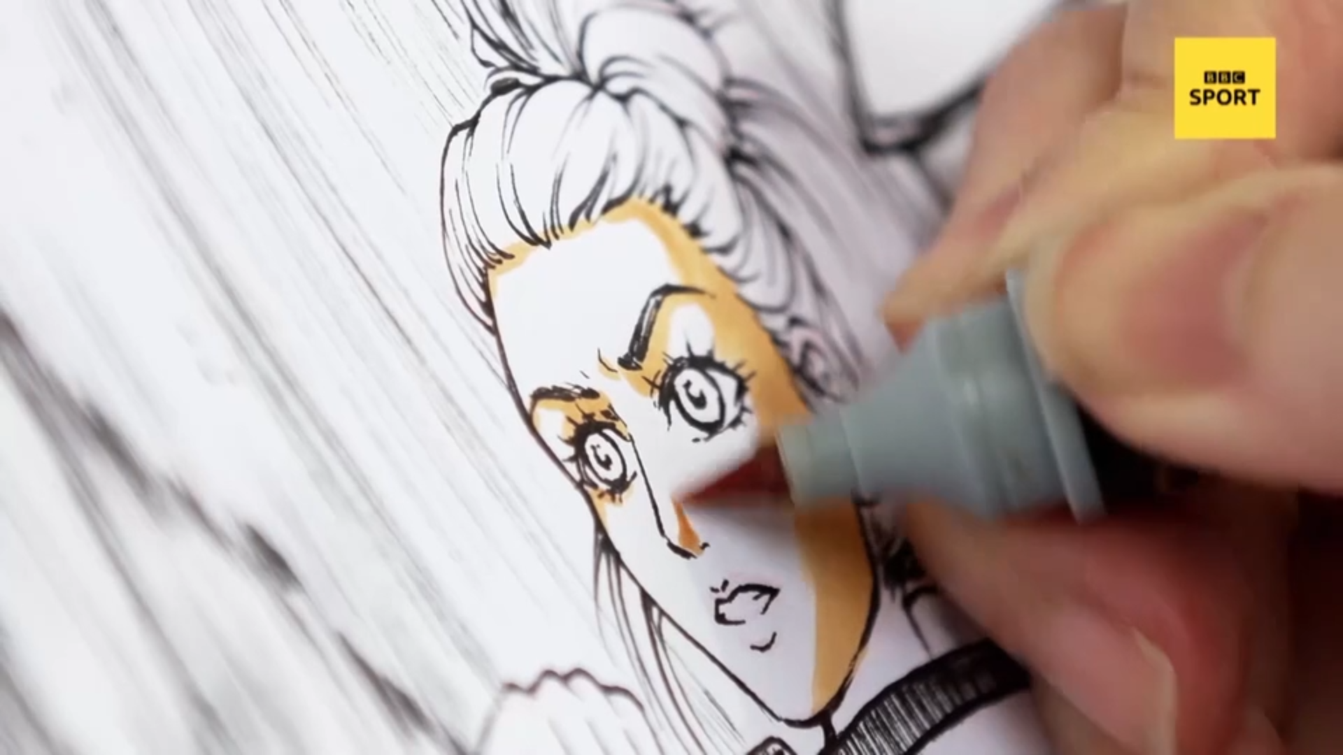 Video przedstawia tworzenie mangowego portretu olimpijki Jade Jones - dwukrotnej złotej medalistki w Taekwondo.