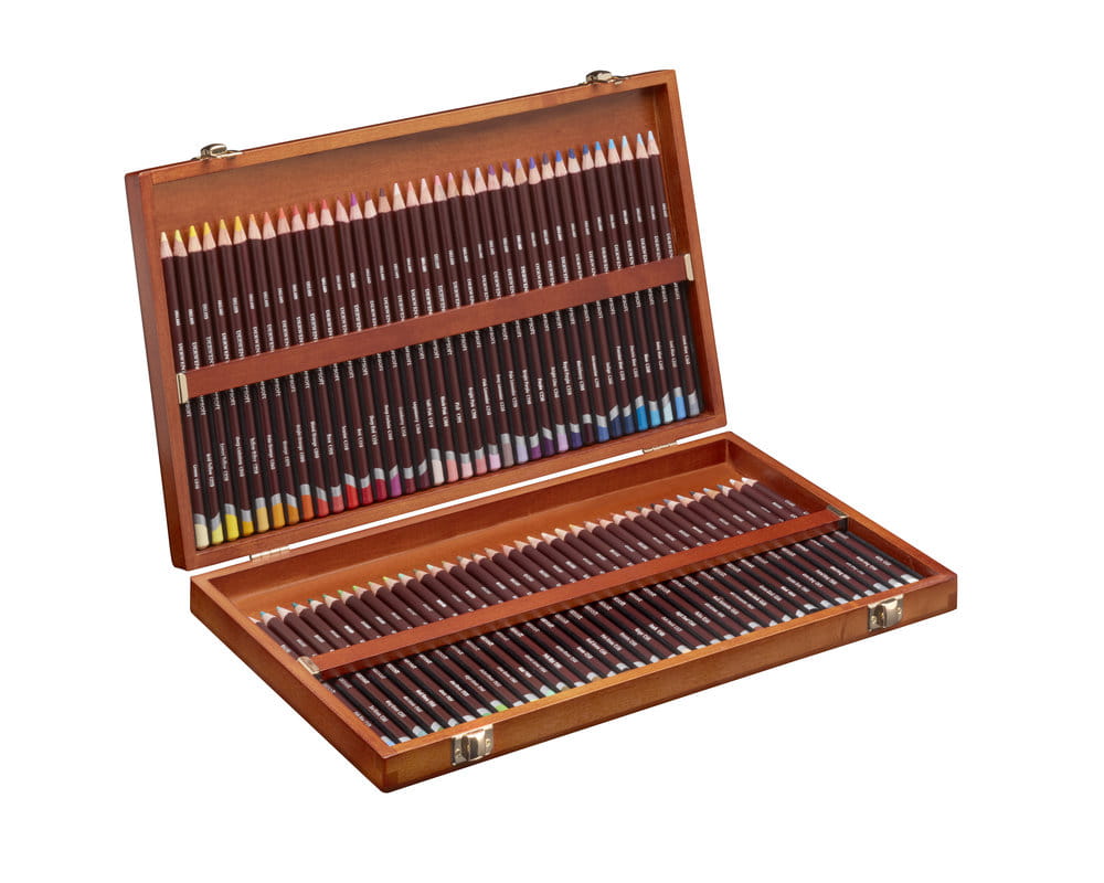 Elegancki, drewniany zestaw, który już samym wyglądem zachęca do rysowania, zawiera pełną gamę 72 kolorów.