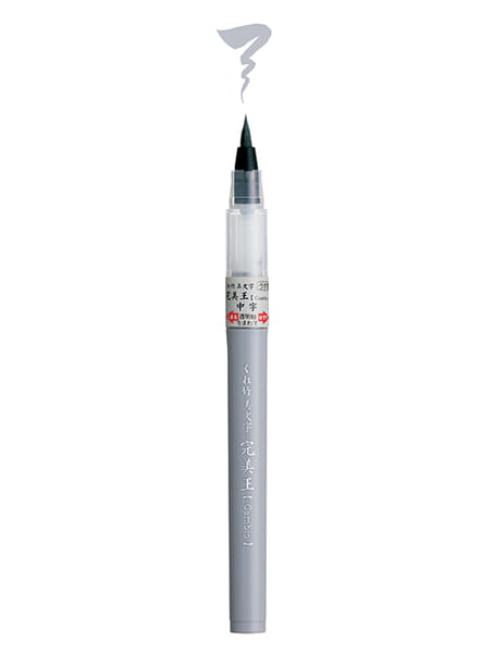 Kuretake Bimoji Cambio Usuzumi Medium to stylowy i elegancki pisak pędzelkowy. Posiada średniej grubości końcówkę z syntetycznego włosia, idealną do kaligrafii i rysunku oraz wymienny cartridge z wodnym, pigmentowym, tuszem w jasnoszarym odcieniu. Tusz jest światłotrwały, bezzapachowy i wolny od ksylenu. Bimoji Cambio znakomicie sprawdza się jako uzupełnienie podczas pracy farbami akwarelowymi lub markerami na bazie alkoholu. Spośród innych pisaków kaligraficznych najbliższy jest tradycyjnemu pędzlowi – nie ma tu konieczności naciskania pisaka aby spowodować wypływanie tuszu. Dzięki specjalnemu przepływowi tuszu - podczas pisania odpowiednia jego ilość samoistnie spływa do pędzelkowej końcówki.