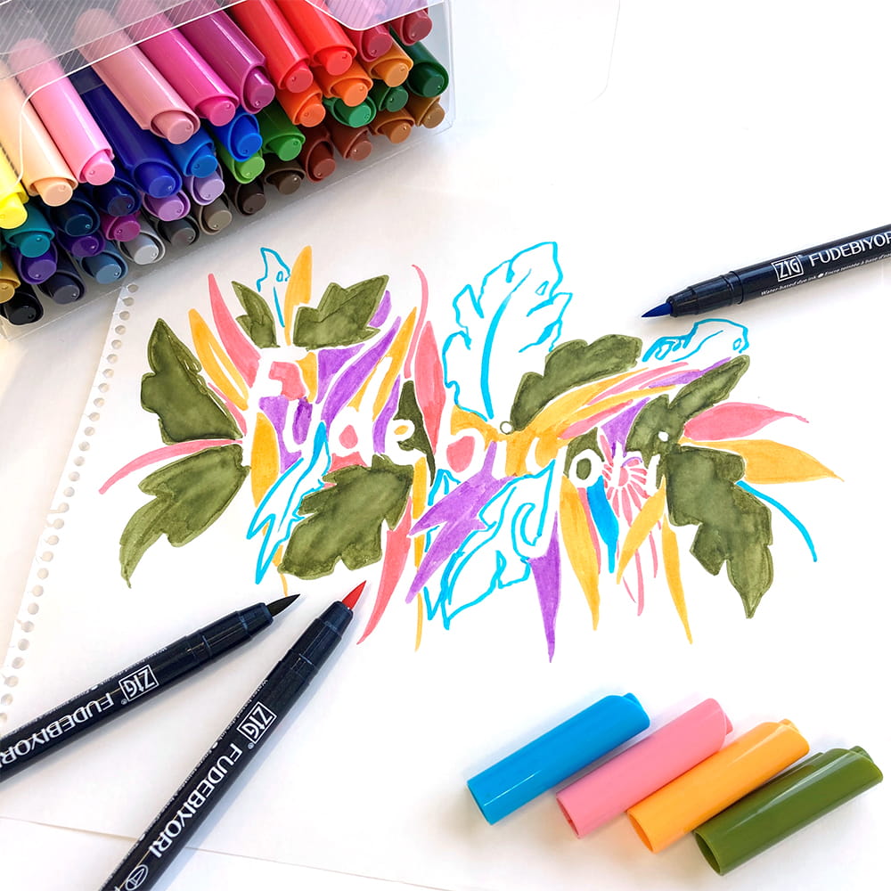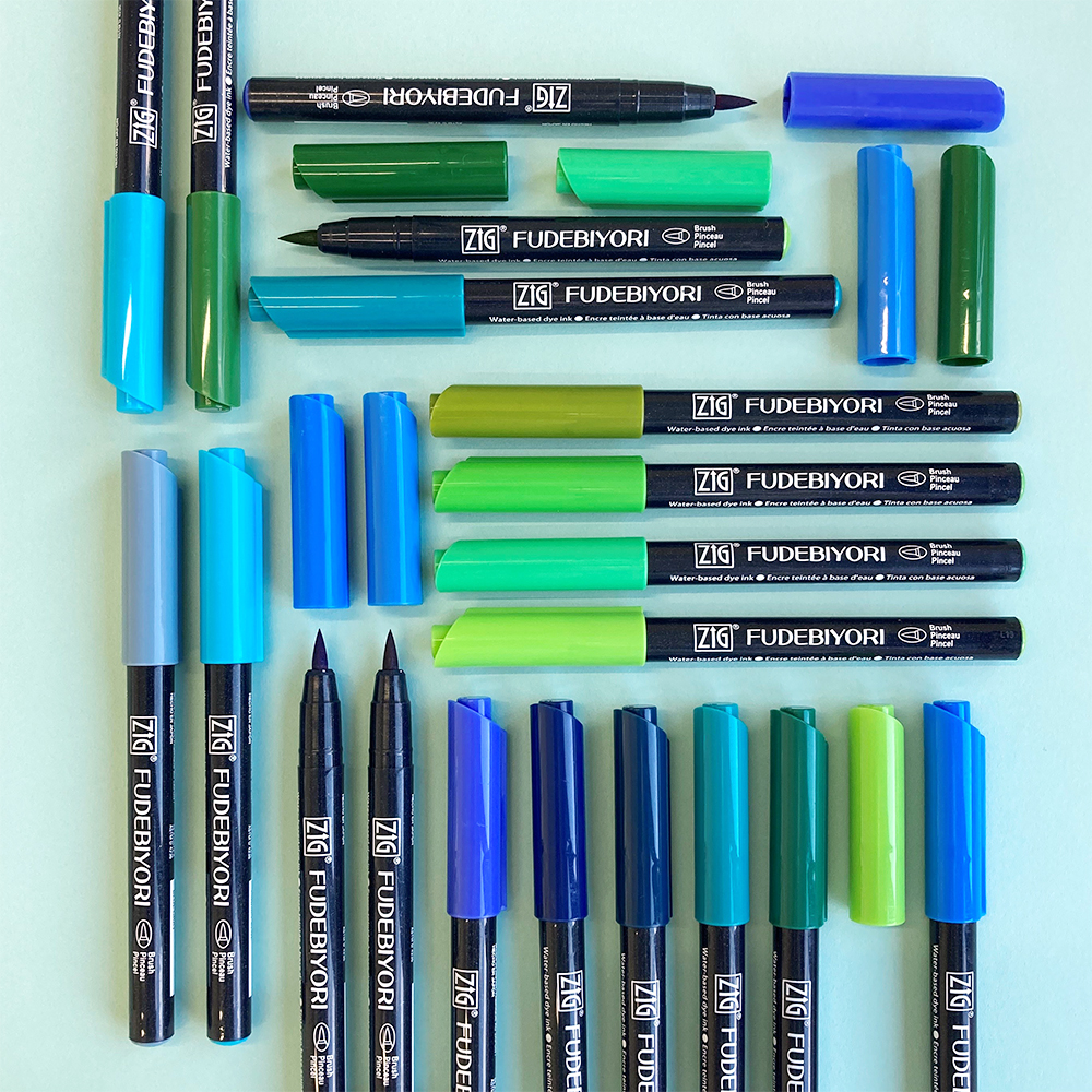 Kuretake Fudebiyori Brush Pen łączy komfort pracy typowy dla markera z możliwościami ekspresji tradycyjnego pędzla. Posiada filcową, pędzelkową końcówkę pozwalającą uzyskać linie o zróżnicowanej grubości. Wodny, barwnikowy, wolny od ksylenu tusz umożliwia rozrzedzanie i mieszanie kolorów przy użyciu pisaka pędzelkowego z wodą. Dzięki temu uzyskujemy bogactwo malarskich efektów akwarelowych. Doskonały do rysowania mangi, liternictwa, kaligrafii i scrapbookingu, kolorowanek i kart okolicznościowych. Przechowywać poziomo.