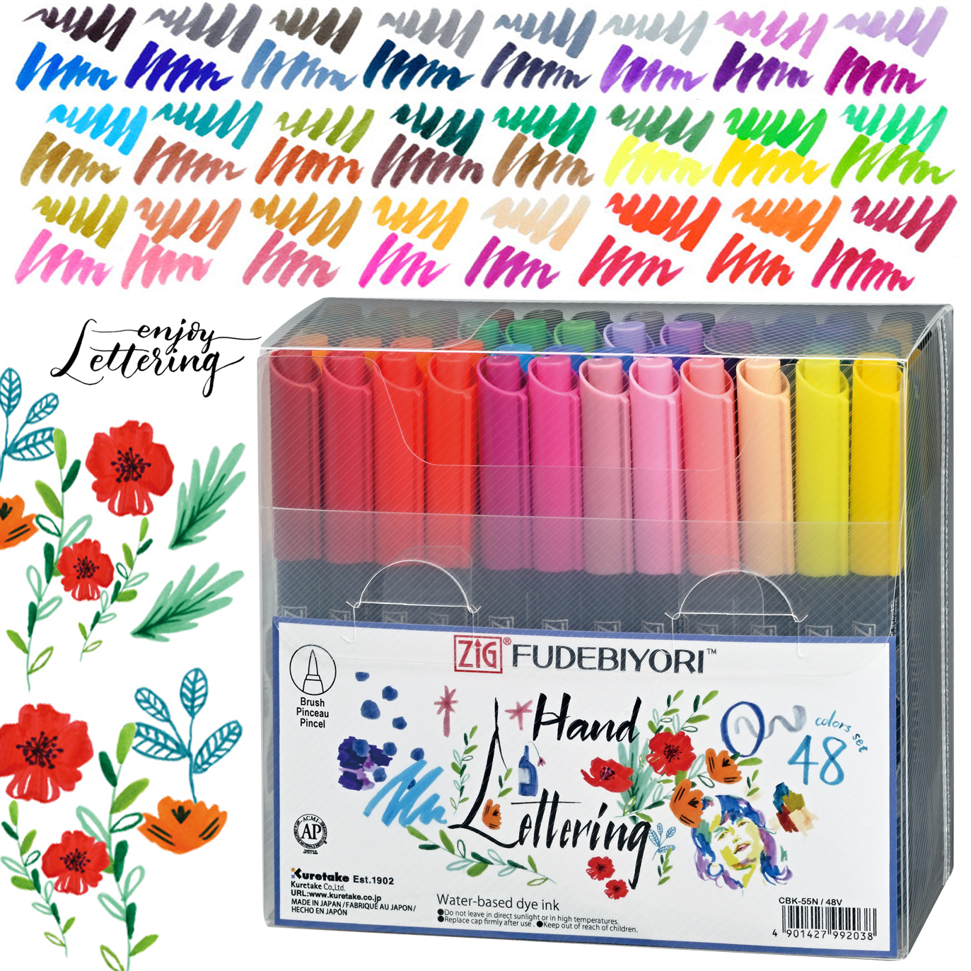 Zestaw zawiera 48 pisaków Fudebiyori w kolorach: