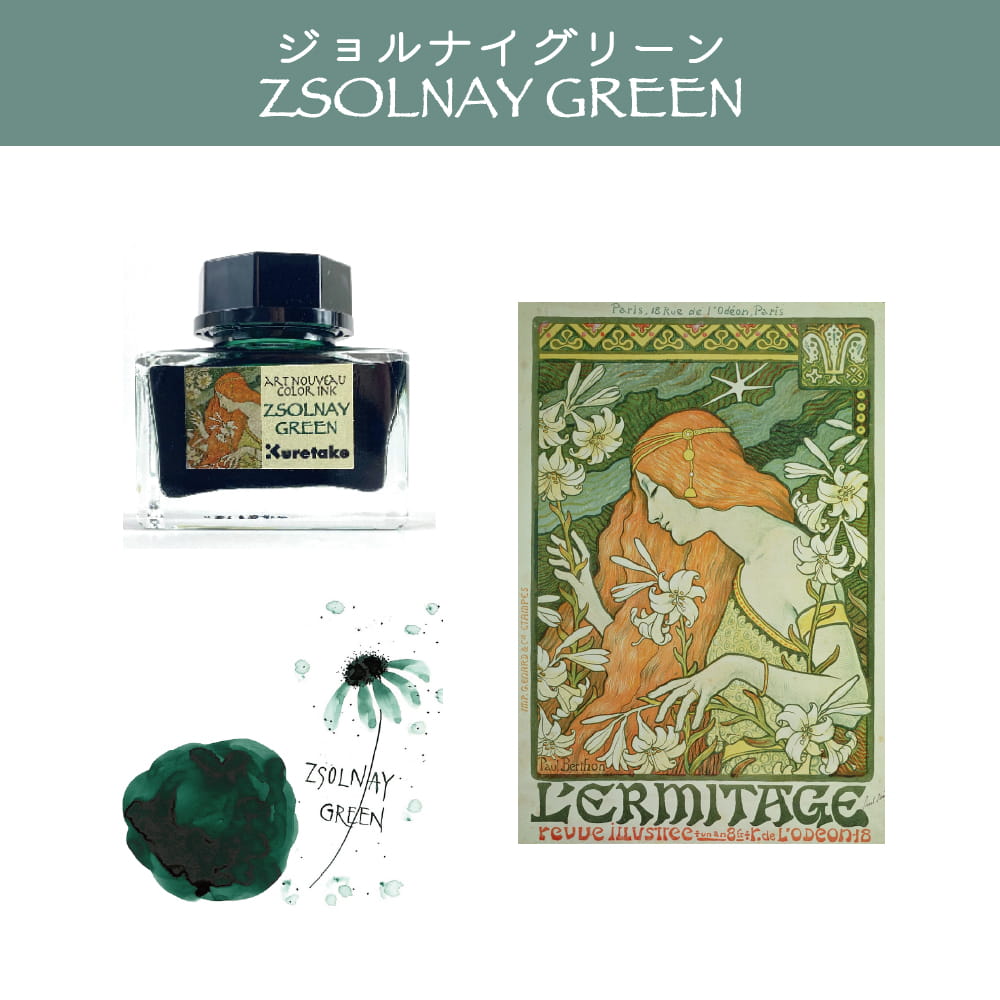 ProducenciKuretake Atrament Ink-Cafe Art Nouveau ZSOLNAY GREEN ECF060-540