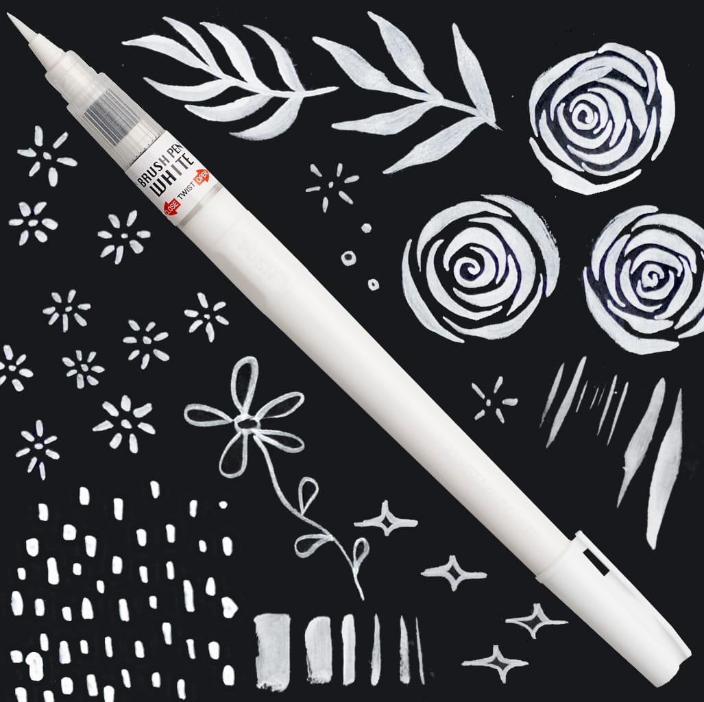 - Pisak pędzelkowy z wodnym, szybkoschnącym, pigmentowym tuszem w kolorze białym.