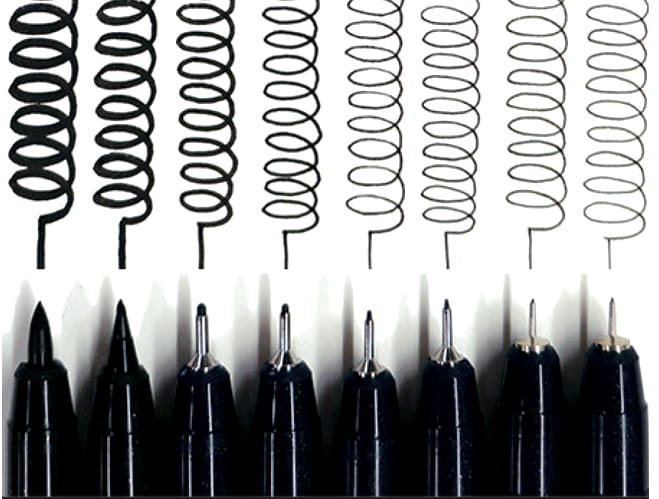 Zestaw zawiera 8 pisaków Mangaka z czarnym tuszem: cienkopisy o grubościach 003, 005, 01, 03, 05, 08 oraz brushpeny Flexible Fine oraz Medium.