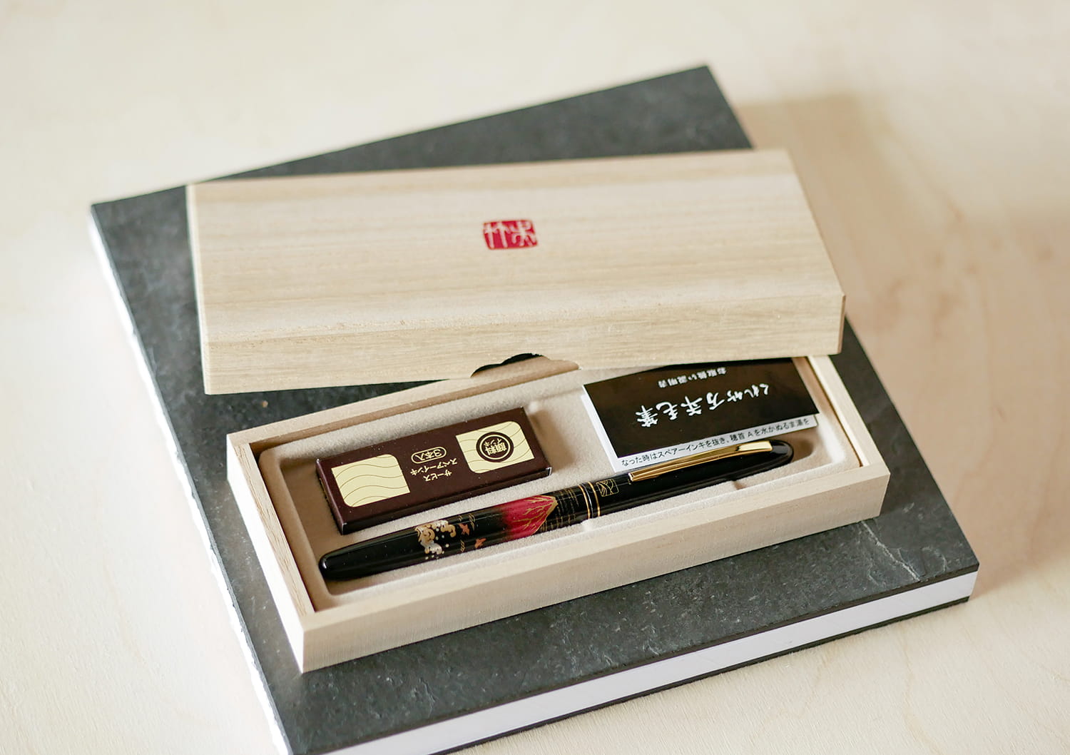 Mannen Mouhitsu z tradycyjnym zdobieniem Maki-e