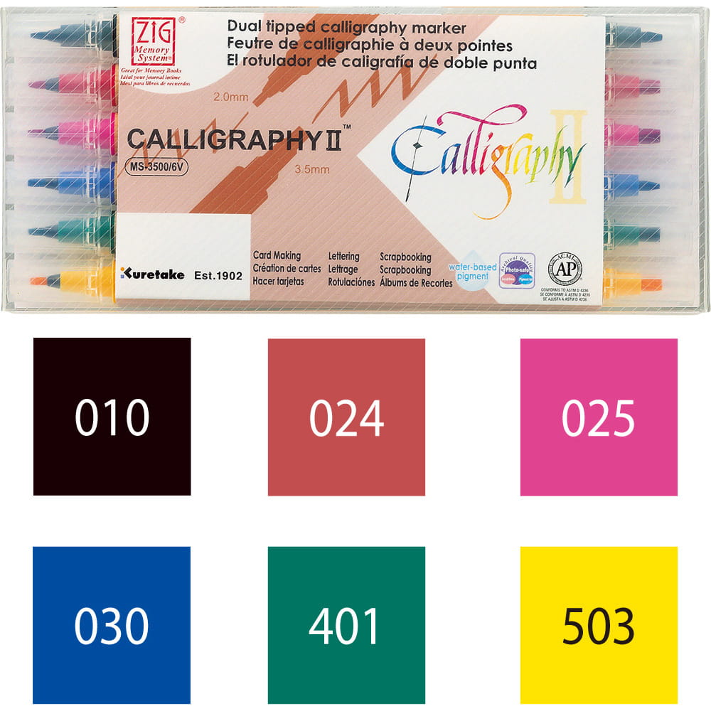 ProducenciKuretake ZIG Calligraphy II pigmentowe 2mm & 3,5mm Zestaw 6 kolorów MS-3500/6V