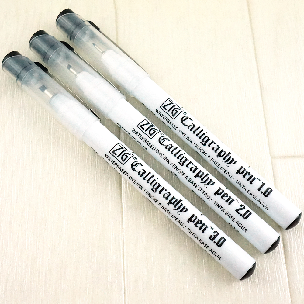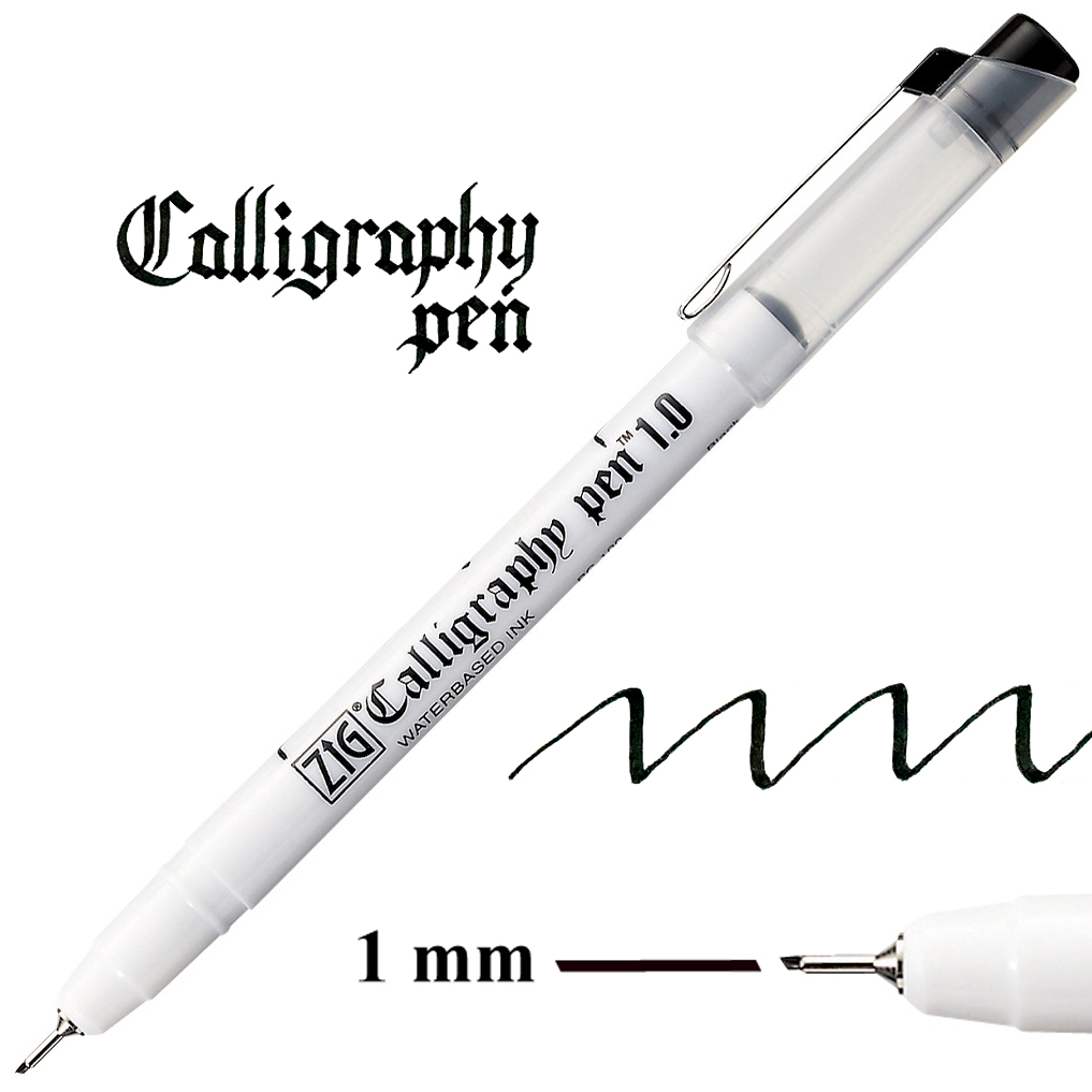 Pisaki z serii ZIG Calligraphy Pen dostępne są w dwóch rodzajach: z końcówką ściętą skośnie (OBLIQUE) i pod kątem prostym (SQUARE), oraz w trzech różnych grubościach: 1 mm, 2 mm oraz 3 mm. Zawierają wodny, bezwonny, barwnikowy tusz. Można je również używać jako narzędzia uzupełniającego do tworzenia ilustracji we współpracy z markerami z tuszem na bazie alkoholu - bez obawy rozmycia.