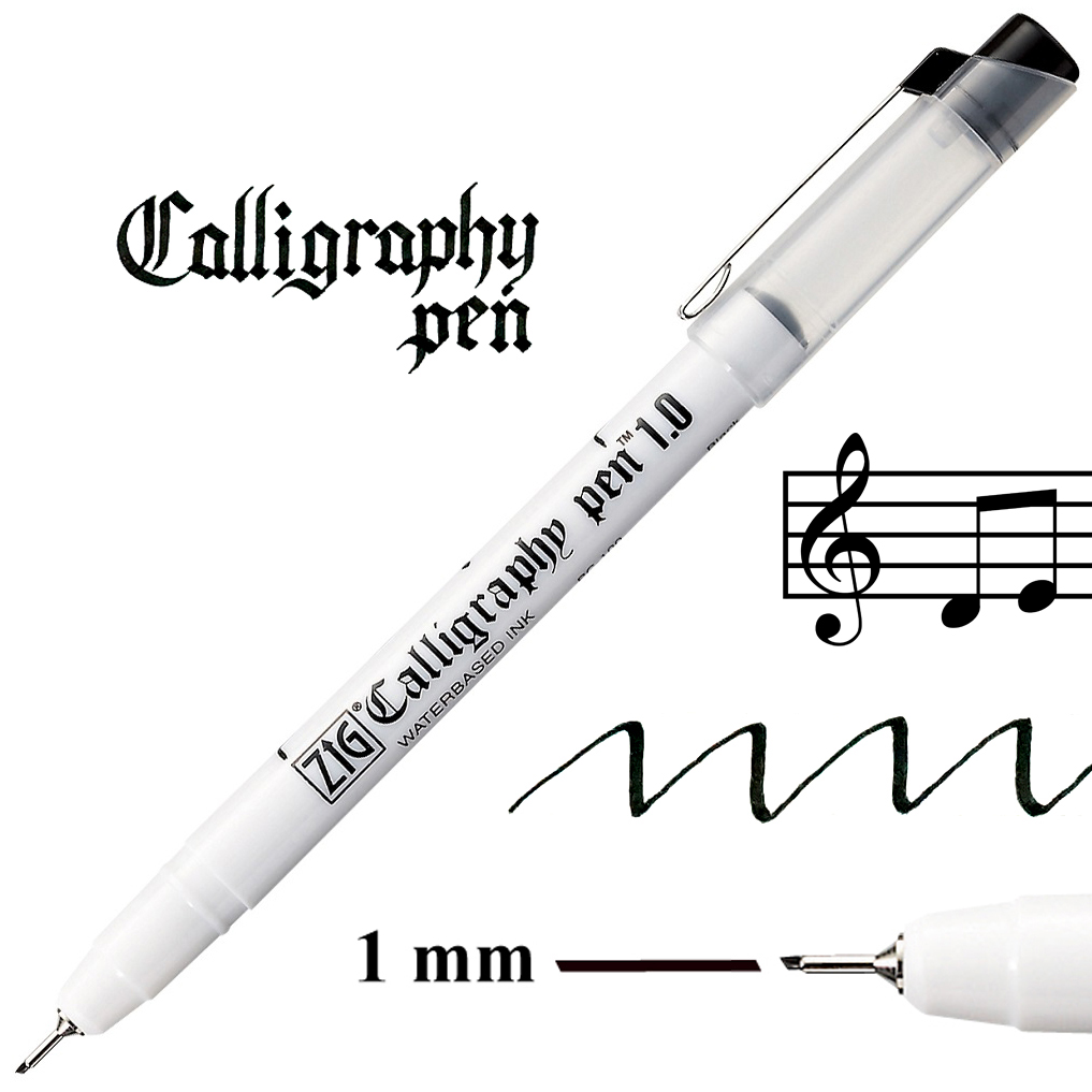 Kuretake ZIG Calligraphy Pen 1,0 to pisak do kaligrafii ze skośnie ściętą końcówką o szerokości 1mm. Końcówka "oblique", idealna do krojów pisma takich jak Italika czy pismo gotyckie. Rozmiar 1mm jest idealny do pisania nut.