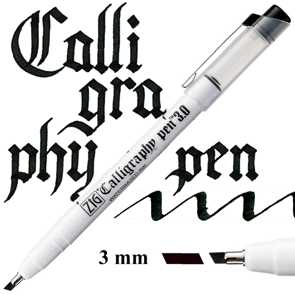 Kuretake ZIG Calligraphy Pen 3,0 to pisak do kaligrafii ze skośnie ściętą końcówką o szerokości 3mm. Końcówka "oblique", idealna do krojów pisma takich jak Italika czy pismo gotyckie.