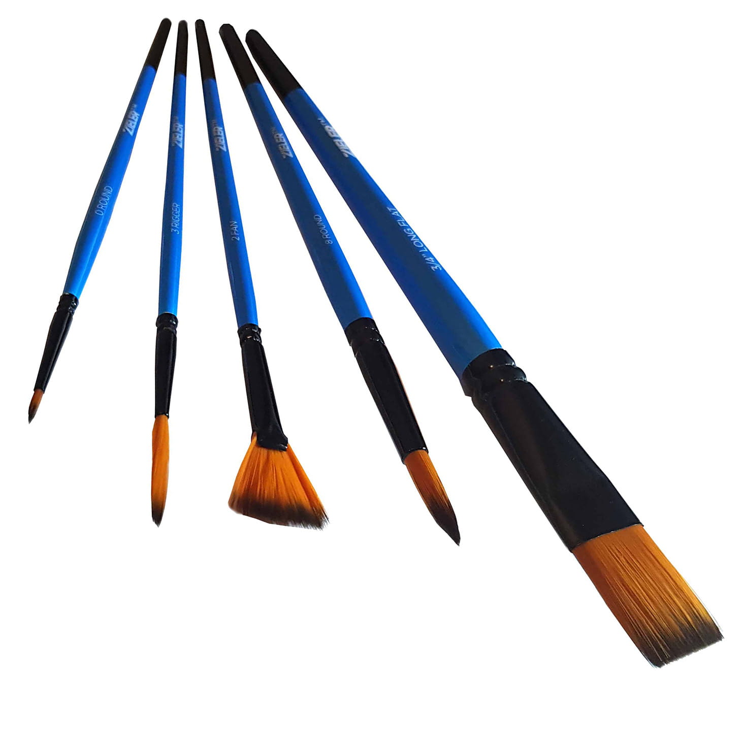 Okrągły nr 0, 8, Wachlarz nr 2, Długie Płaskie nr 3/4 ″ oraz Rigger nr 3.