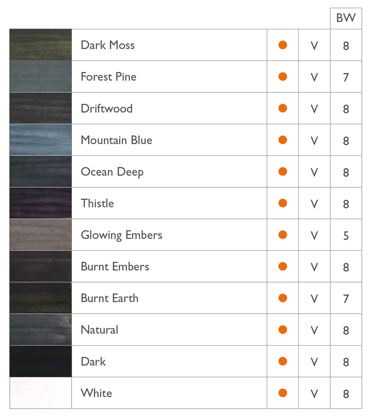 oraz 12 kostek węgla rozpuszczalnego w odcieniach: Dark Moss, Forest Pine, Driftwood, Mountain Blue, Ocean Deep, Thistle, Glowing Embers, Burnt Embers, Burnt Earth, Natural, Dark, White.